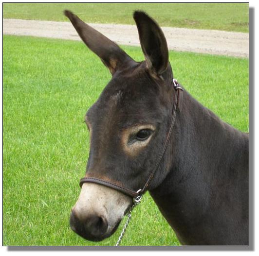 is a sharp looking donkey. Her color is hard to describe - dark